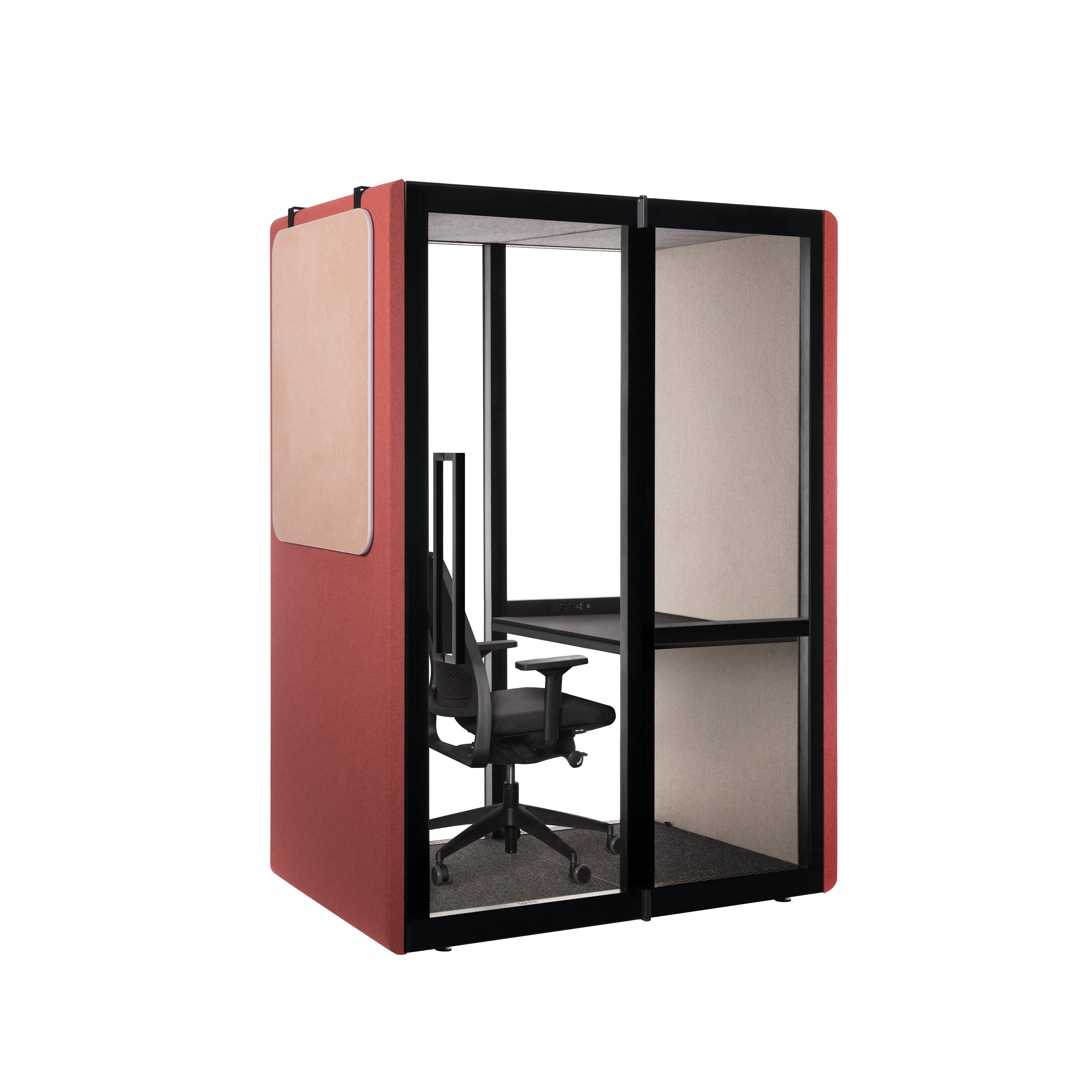 Ett mångsidigt kontorsbås som fungerar som ditt egna privata kontor. Med ett stort bord och en bekväm kontorsstol erbjuder det en tyst och behaglig miljö för fokuserat arbete, videomöten och längre uppgifter.