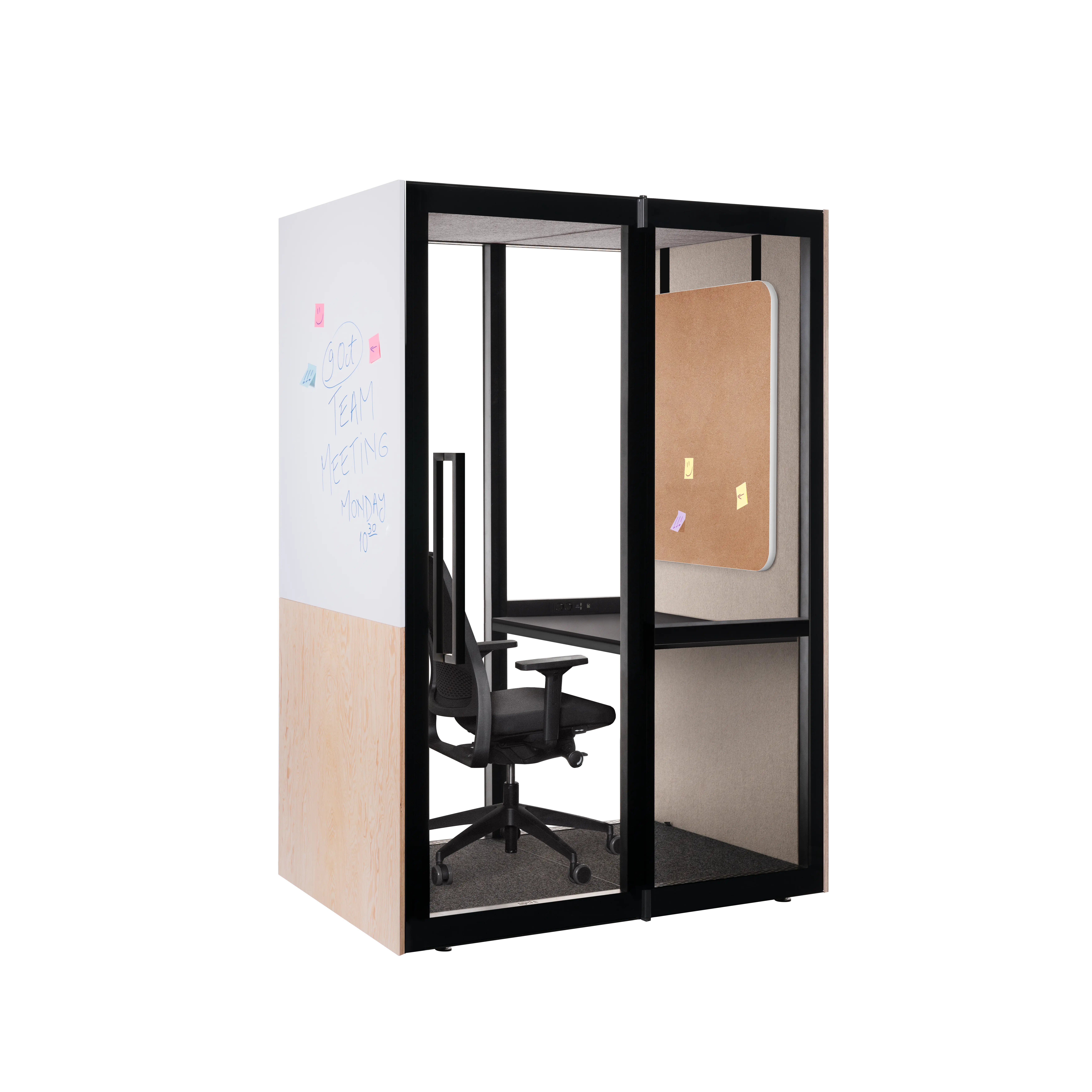 Ett komplett, snabb monterat och modulärt kontorsutrymme utformat för fokus och effektivitet. Med alla nödvändiga tillbehör på plats skapar detta tysta rum en tyst, professionell och störningsfri arbetsmiljö – mitt i kontoret.